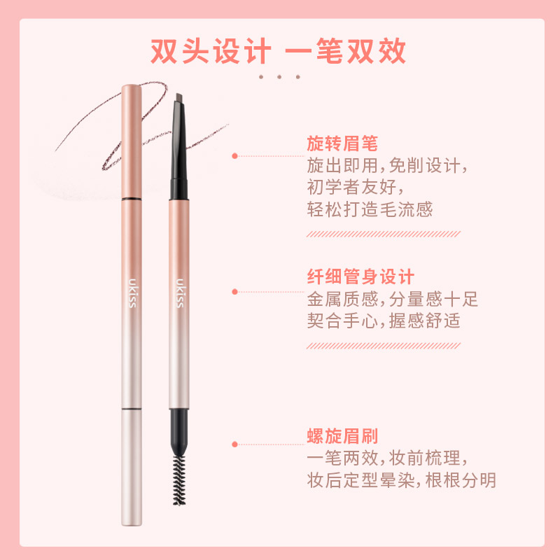 ukiss三色眉粉眉笔防水防汗持久不脱色初学者女自然立体野生眉