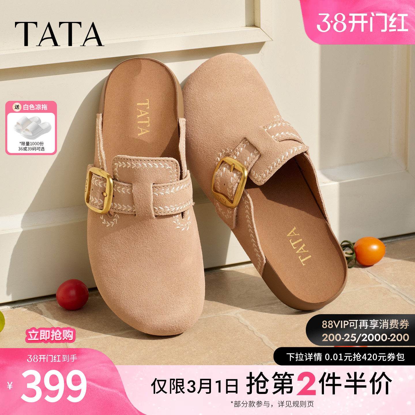 天猫TATA他她女鞋2026夏季新款勃肯鞋时尚百搭拖鞋后空凉鞋KM804BH6