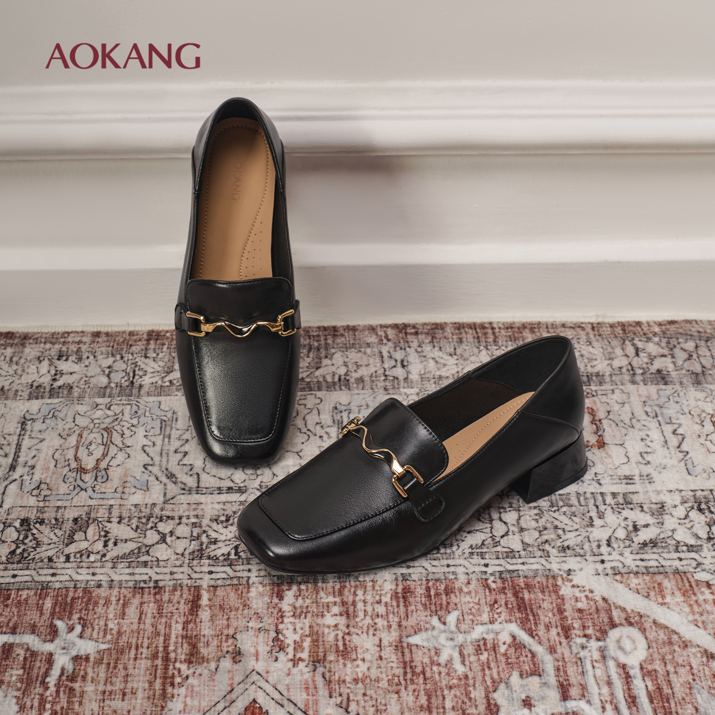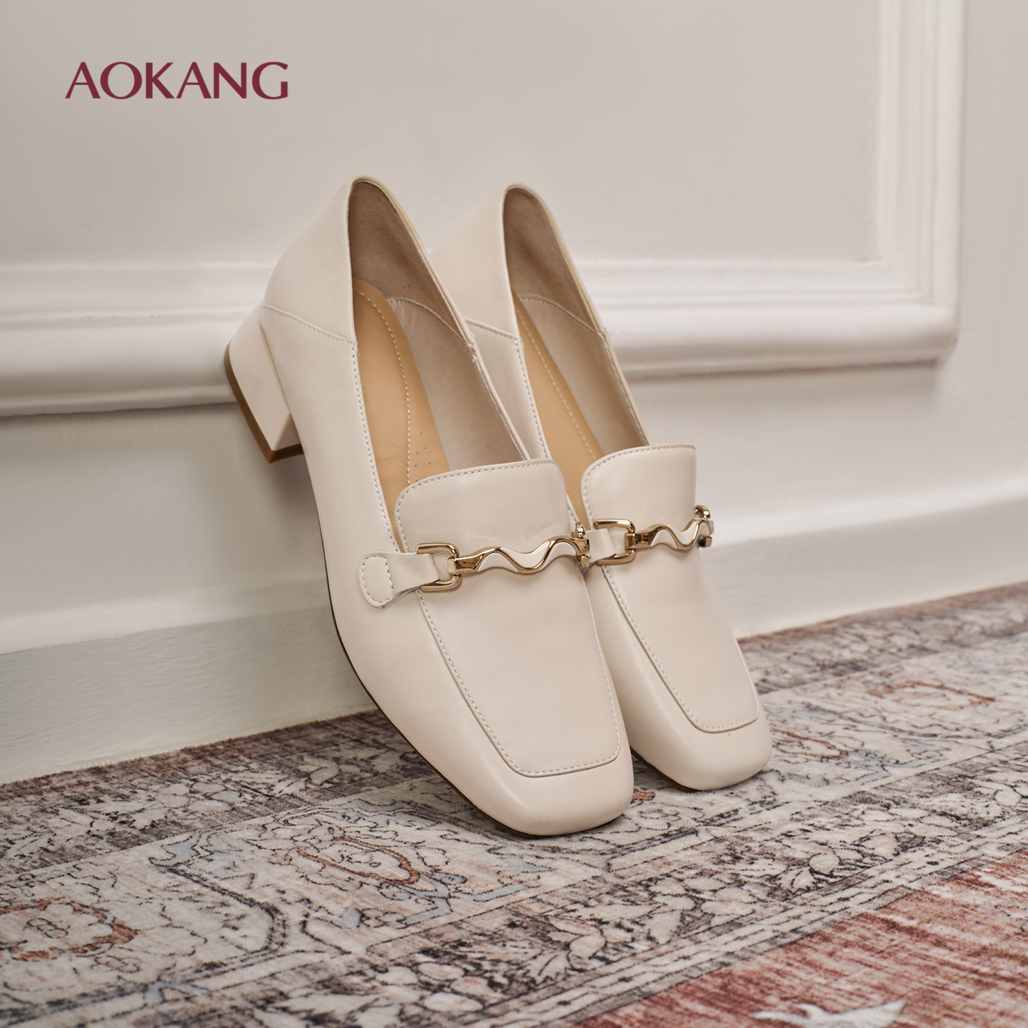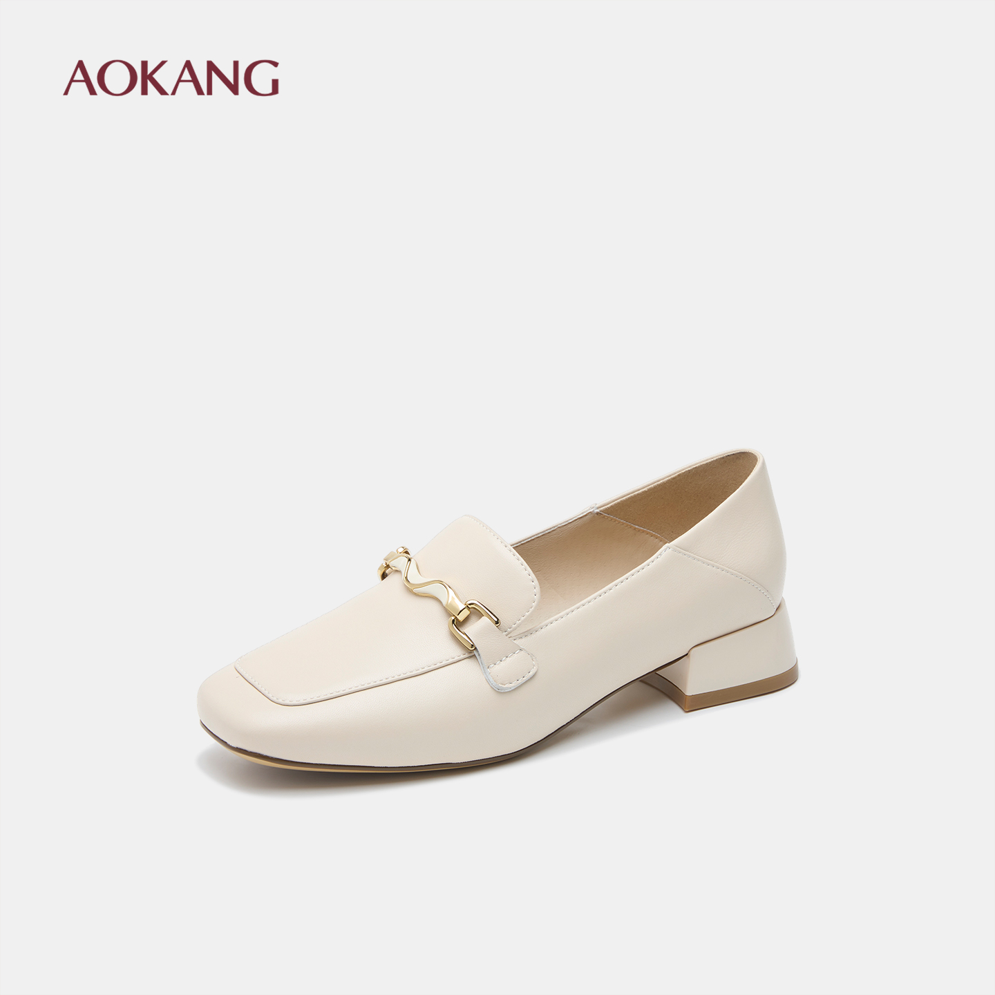 天猫奥康 女鞋2025秋季新款乐福鞋白色软底方头羊皮鞋一脚蹬妈妈单鞋
