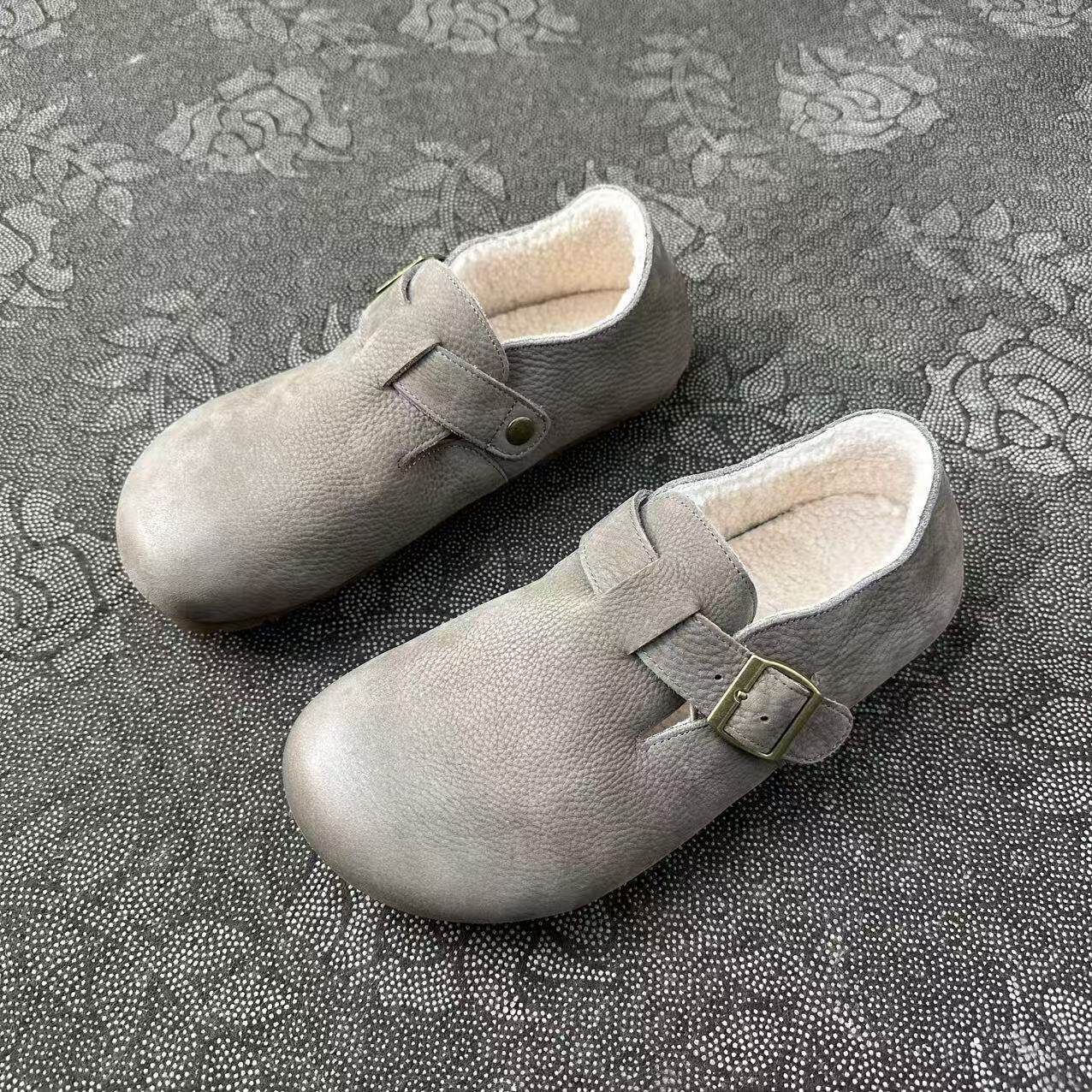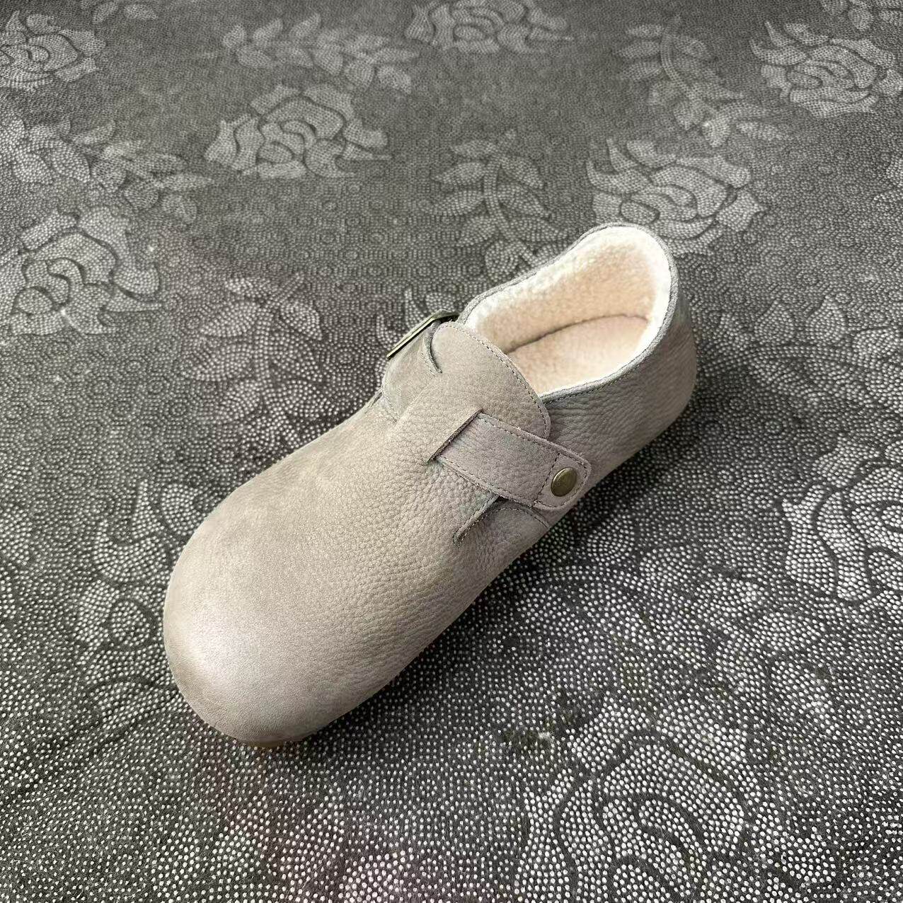米霏~真皮勃肯鞋女冬季平底2026新款全包加绒棉鞋一脚蹬大码女鞋