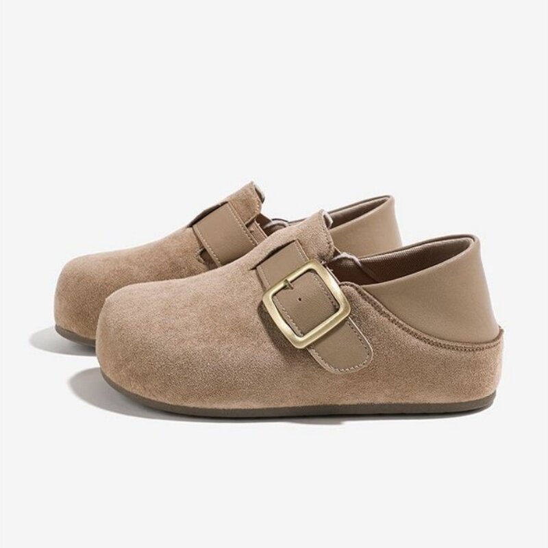 天热风勃肯鞋女款2025年春季新款复古一脚蹬休闲拖鞋米色平底女鞋子