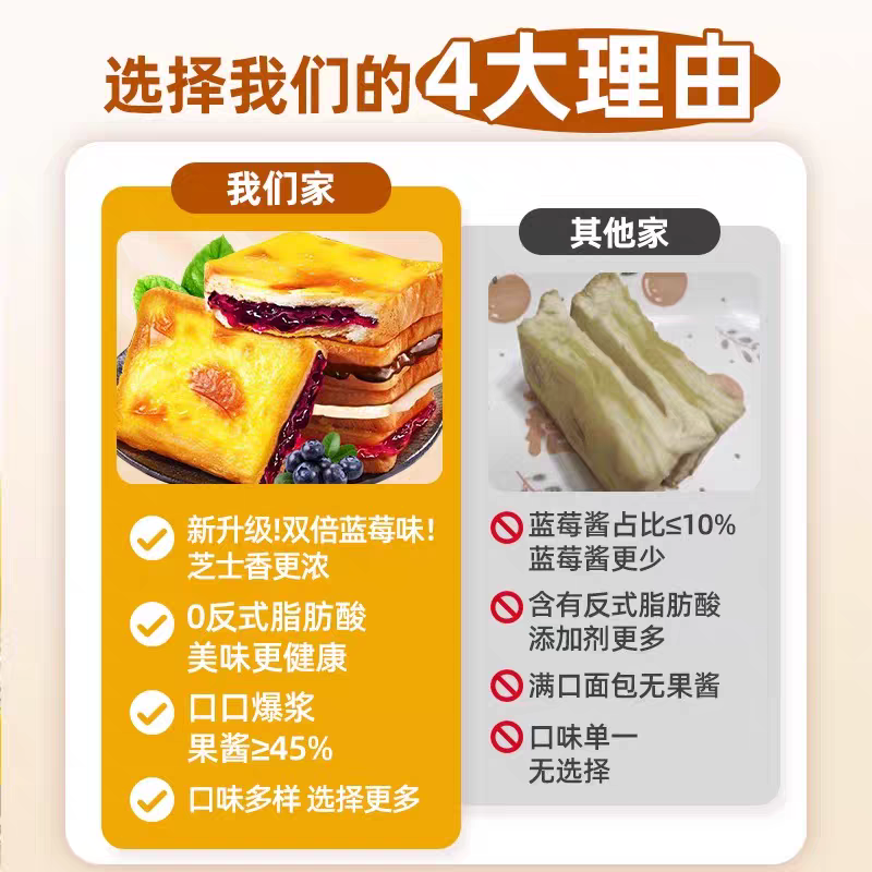 天猫蓝莓岩烧乳酪面包吐司夹心整箱早餐解馋蛋糕即食零食小吃休闲食品