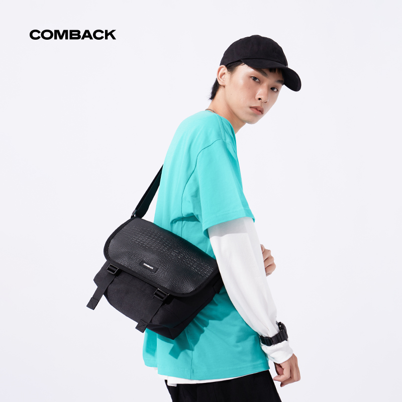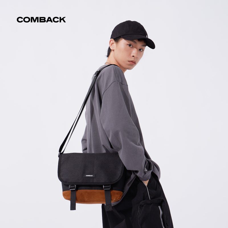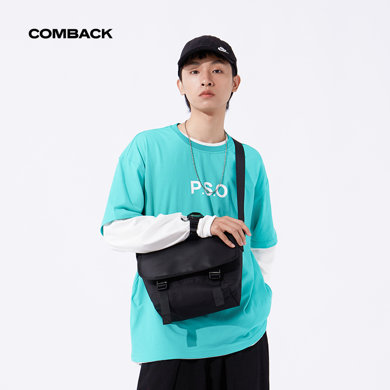 天猫COMBACK国潮单肩斜挎包男 运动休闲邮差小包情侣机能潮牌个性背包
