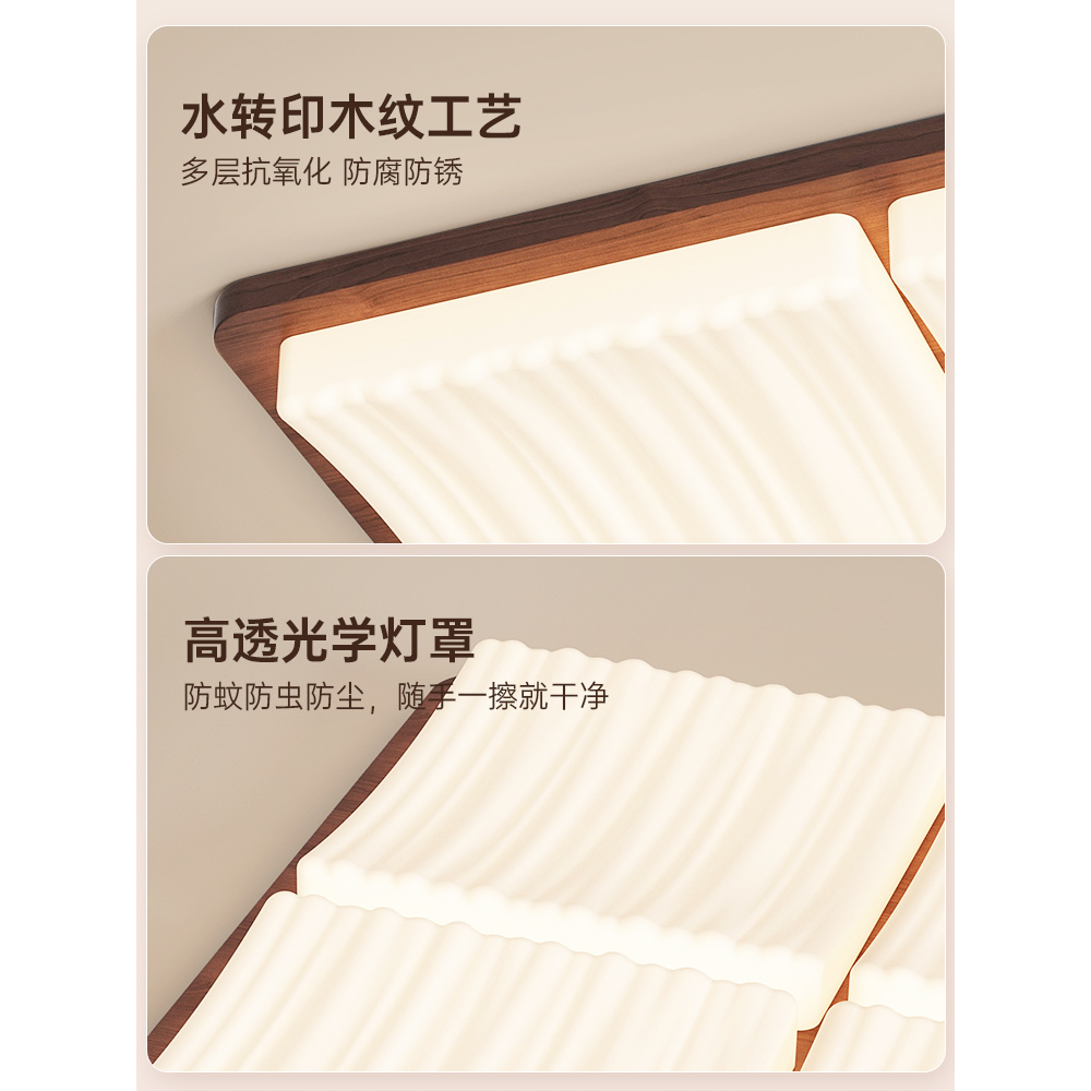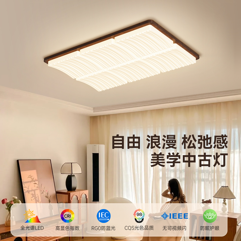 天猫箭牌波浪客厅灯2025年新款胡桃木色吸顶灯中古奶油风护眼卧室灯具
