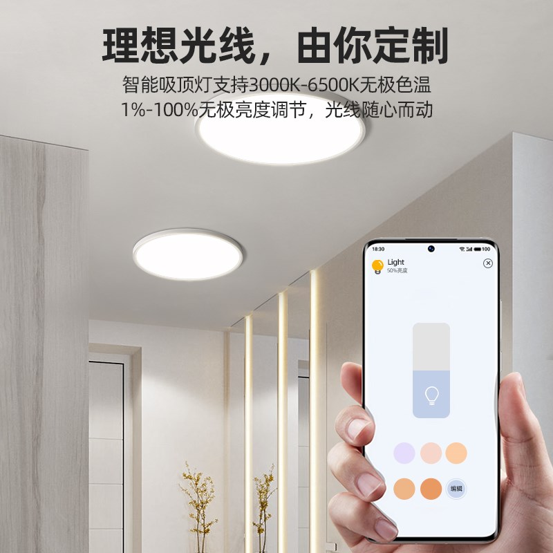 天松伟【新辉】现代极简风吸顶灯圆形房间灯LED三色健康照明卧室灯