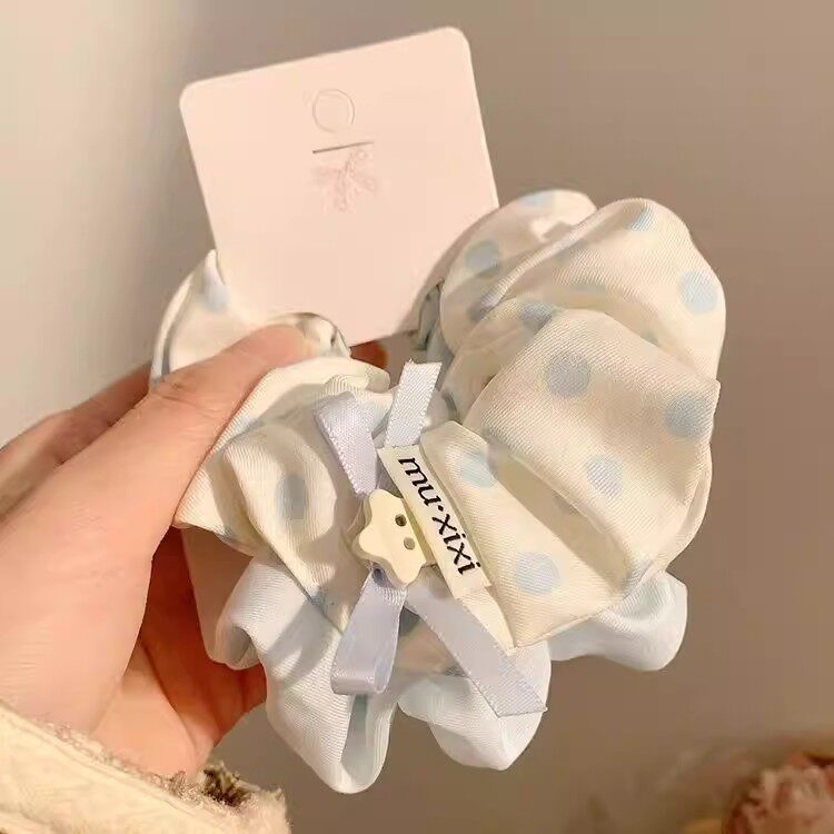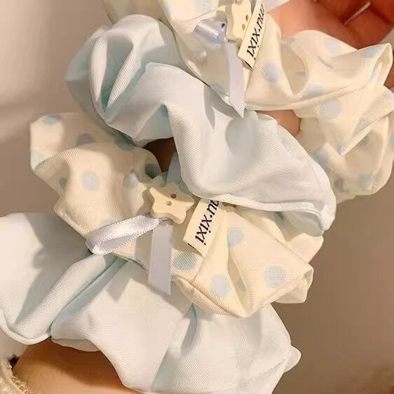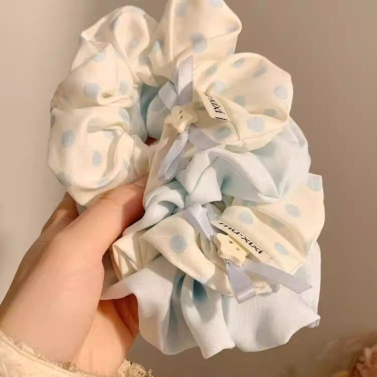 淘宝韩系蓝色波点大肠发圈女高级感慵懒风扎头发低马尾发饰简约头绳女