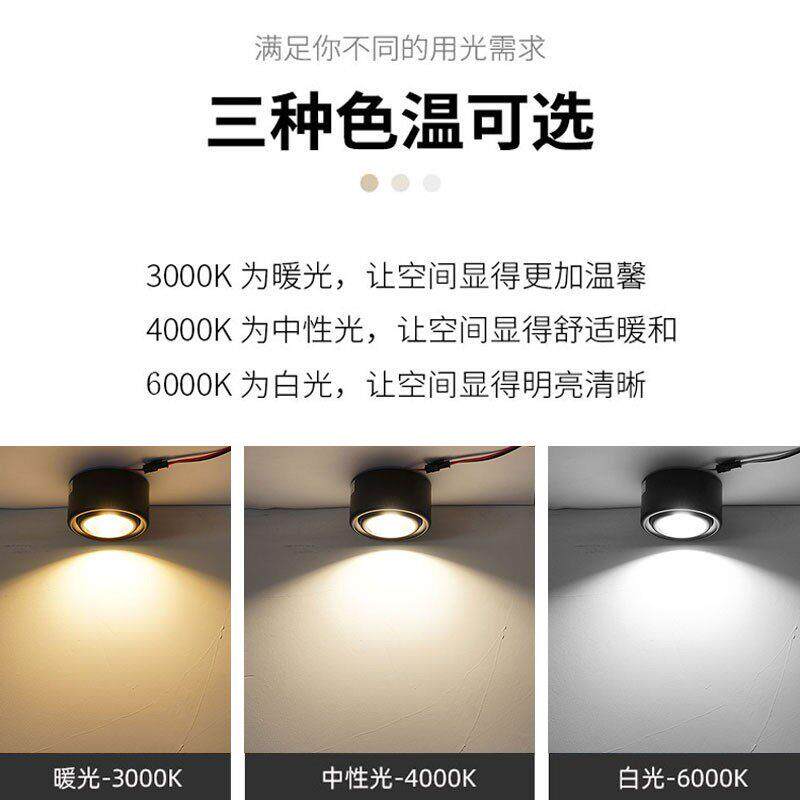 淘宝超薄led明装小射灯3W5W7W可调三色变光筒灯吸顶背景墙壁画免钻孔