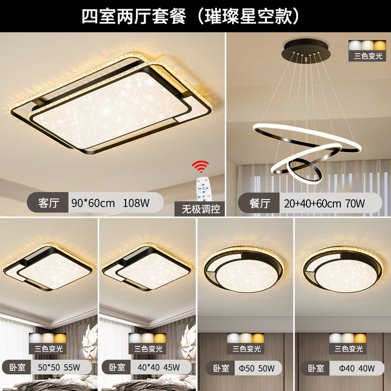 淘宝led客厅灯现代简约灯具全屋套餐组合2023新款大气黑色智能吸顶灯