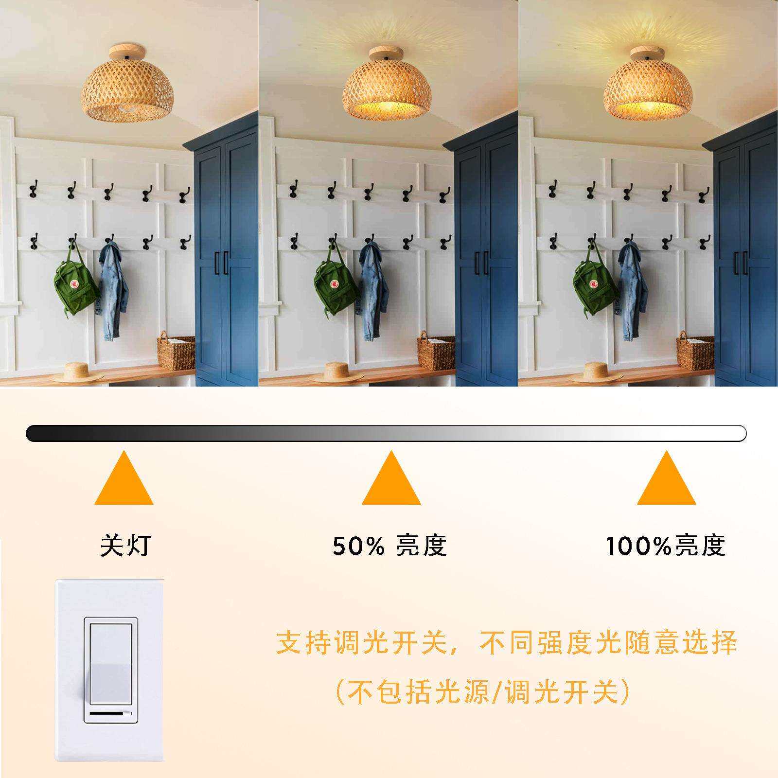 淘宝竹编吸顶灯农舍风编织灯具竹编藤艺吸顶灯过道玄关走廊竹编灯
