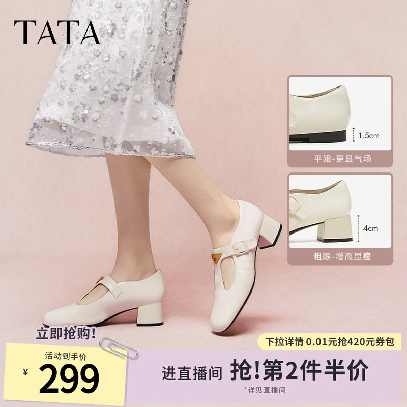 淘TATA他她玛丽珍鞋女鞋子复古真皮粗跟小皮鞋单鞋2025年7HF20AA5