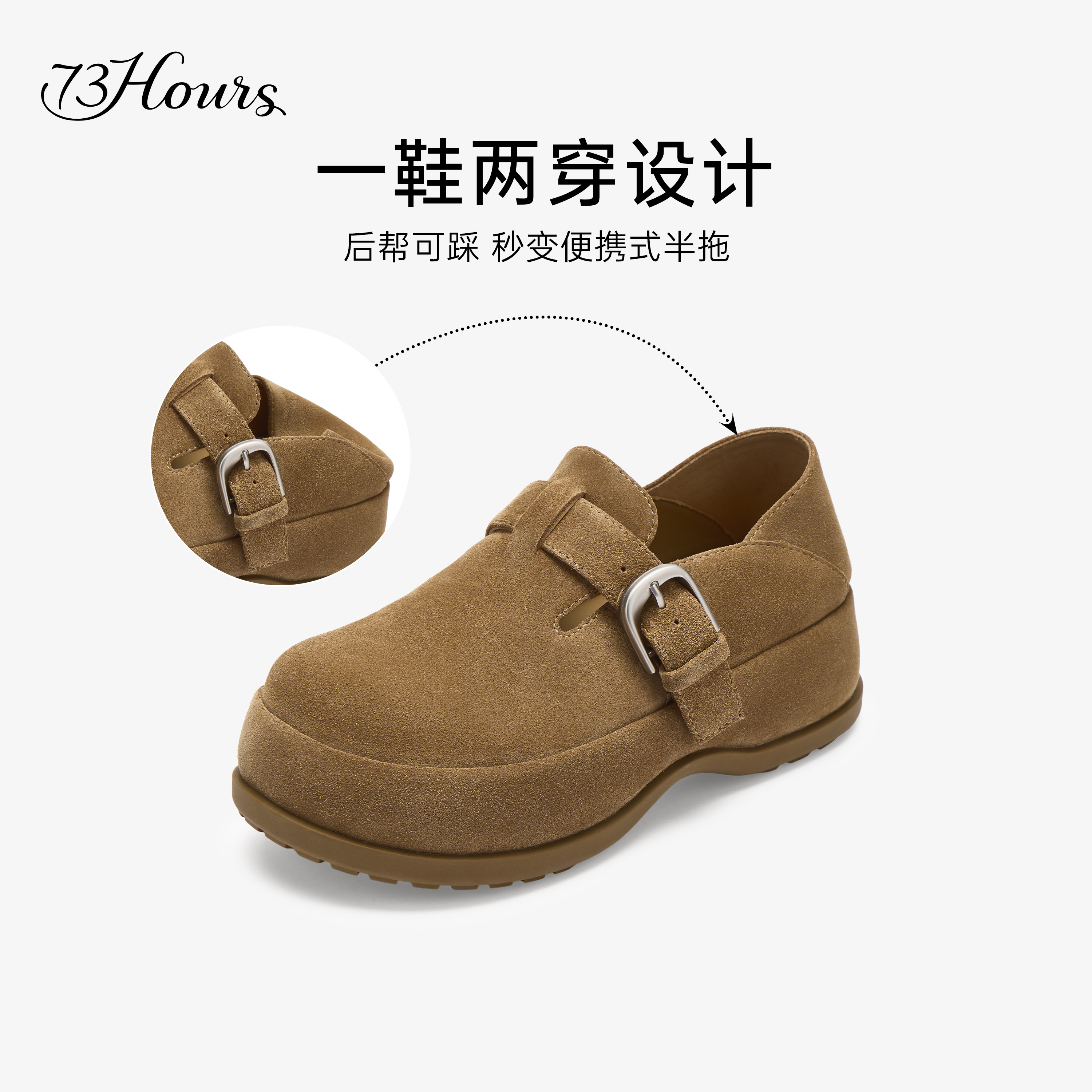 2026年春季,73hours携手热门IP“方枪枪”推出联名款女鞋「烤吐司」,以趣味萌趣的设计语言重塑经典勃肯鞋型。鞋面采用柔软小牛皮,搭配暖调焦糖色系,宛如刚出炉的吐司,温暖治愈。厚底设计巧妙增高5cm,兼顾舒适与显高,轻松拉长腿部线条。EVA缓震中底搭配防滑橡胶大底,久走不累,适合都市通勤与休闲出行。细节处融入方枪枪标志性元素,个性十足又不失优雅。这款时尚与舒适并重的厚底勃肯鞋,既是春日穿搭的点睛之笔,也是表达自我风格的独特宣言,让每一步都走出轻松与自信。