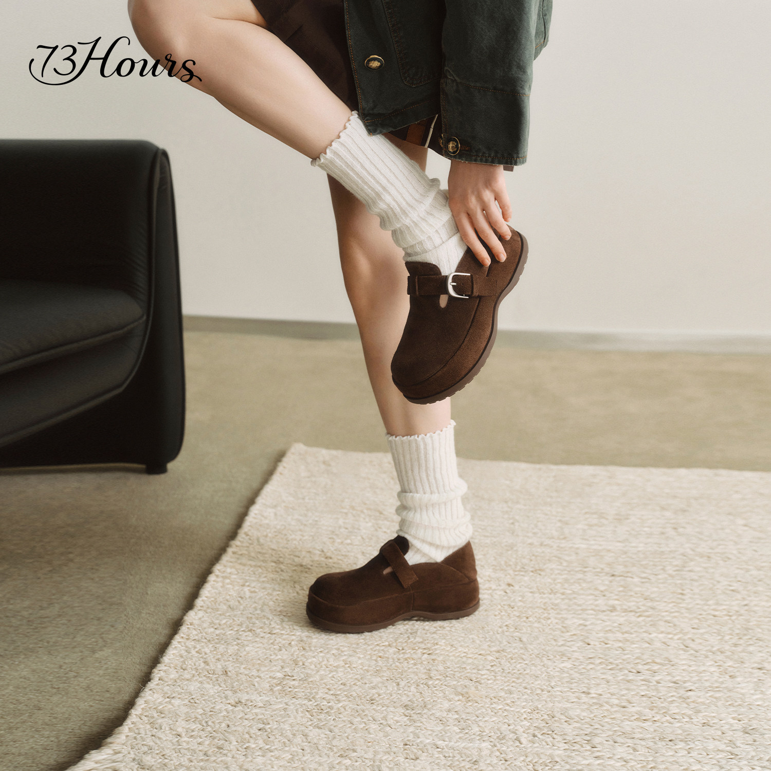 天猫方枪枪同款73hours女鞋烤吐司2026年春季新款时尚增高厚底勃肯鞋