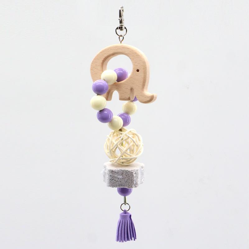 淘鹦鹉秋千 中小型鸟类玩具 苹果木彩珠吊桥 宠物仓鼠磨牙玩耍吊床