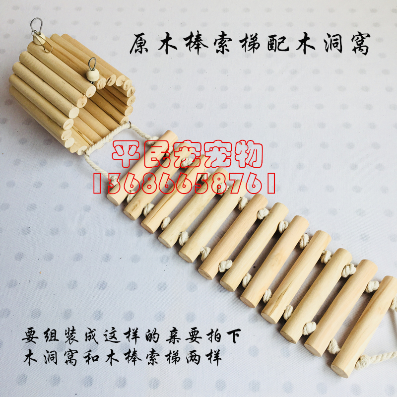 淘宝虎皮牡丹玄凤鸟类玩具圆木站台 天然木质棉绳攀爬梯中小鹦鹉云梯