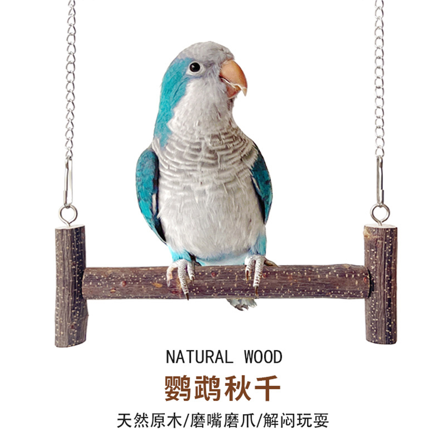 淘鹦鹉秋千 中小型鸟类玩具 苹果木彩珠吊桥 宠物仓鼠磨牙玩耍吊床