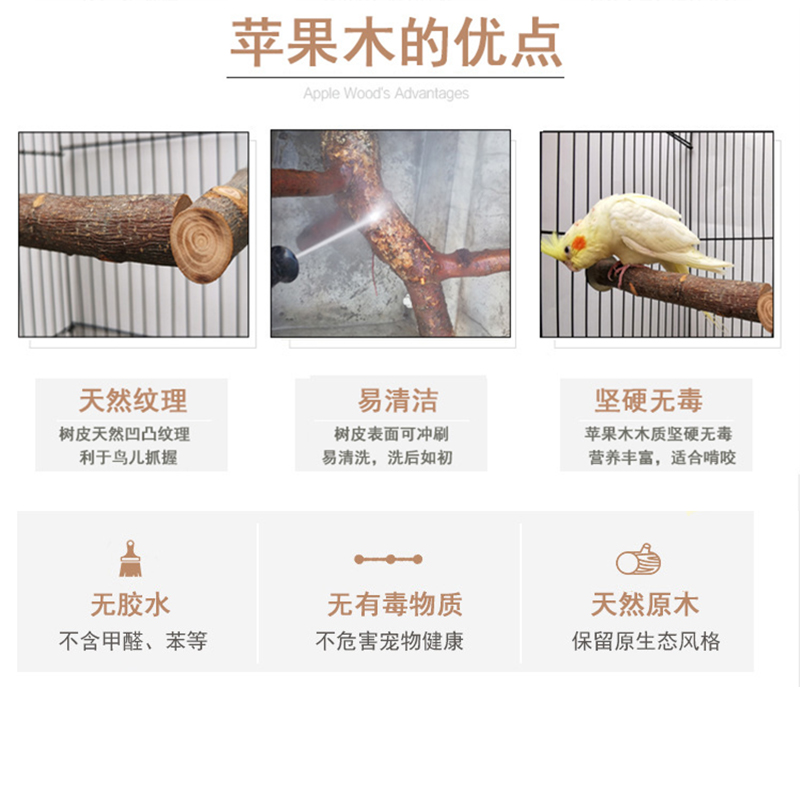 鹦鹉木质站架 鸟类苹果木站杆 宠物啃咬玩具 鹦鹉鸟笼用品L型站杠