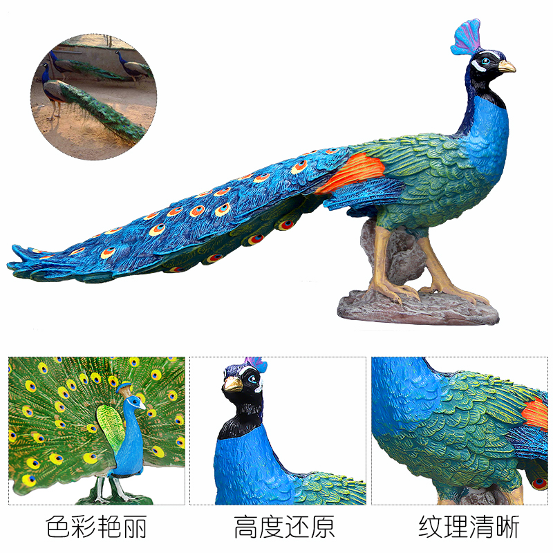 仿真孔雀玩具是一款深受儿童喜爱的科教认知礼物。这款商品以塑料材质制成,呈现出栩栩如生的孔雀形象,兼具玩具和摆件的功能。不仅可以激发儿童对鸟类世界的探索兴趣,还能培养儿童的认知能力和动手能力。
