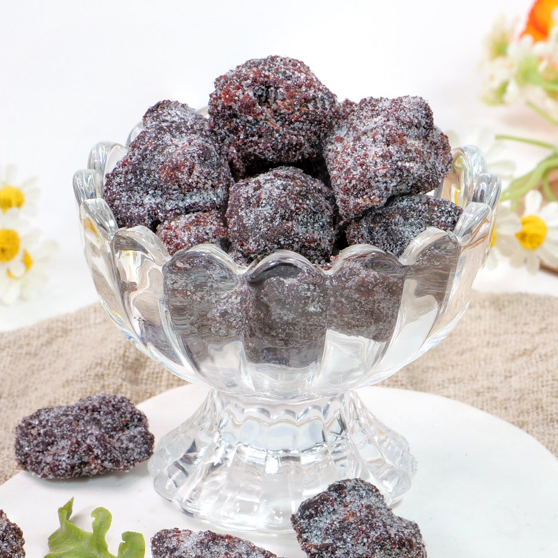 冰糖杨梅干是一款酸甜可口的传统蜜饯零食,精选优质新鲜杨梅为原料,经清洗、去核、糖渍、烘干等工艺精制而成。成品色泽红润透亮,果肉饱满,口感软糯,外层裹有细腻冰糖霜,入口先是清甜,随后泛起自然酸味,生津解腻,回味悠长。既保留了杨梅的天然果香与营养,又增添了冰糖的温润甜味,是老少皆宜的休闲佳品。无论是日常解馋、办公小憩,还是旅途携带,冰糖杨梅干都能带来愉悦的味觉享受,兼具开胃、消食、解暑之效,是健康与美味兼具的经典果脯零食。
