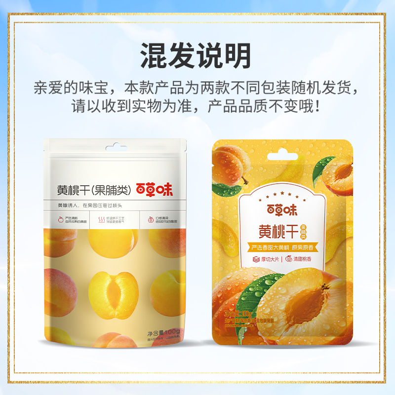 天猫百草味黄桃干果脯100g*2水蜜桃零食蜜饯水果干果脯特产休闲零食