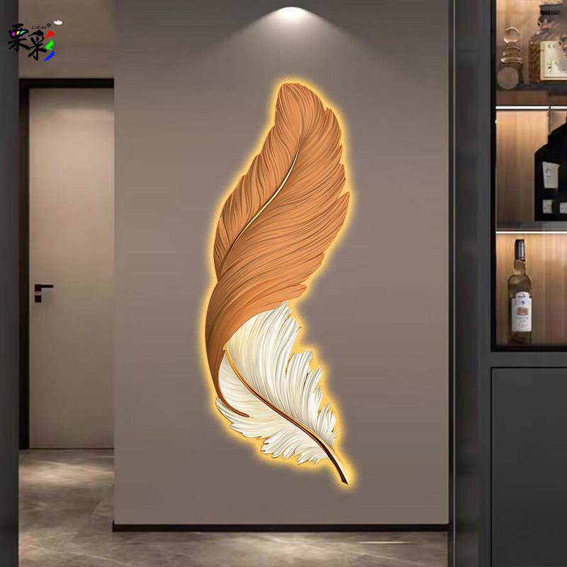 淘宝玄关装饰画 画羽毛客厅沙发背景墙挂画 画LED气氛灯发光画 画走廊