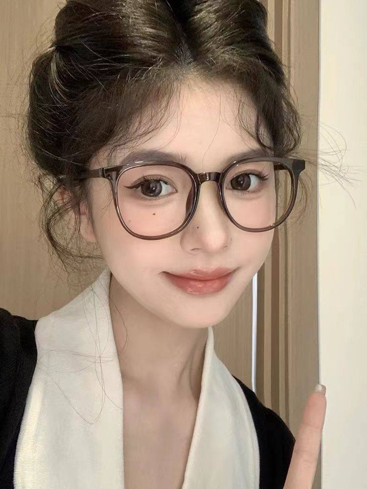 淘宝高级显白栗子棕近视眼镜女ins高颜值可配度数女防蓝光平光镜超轻
