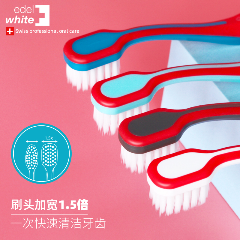 天猫瑞士edelwhite进口软毛宽头牙刷成人清洁懒人牙刷细毛清洁推荐