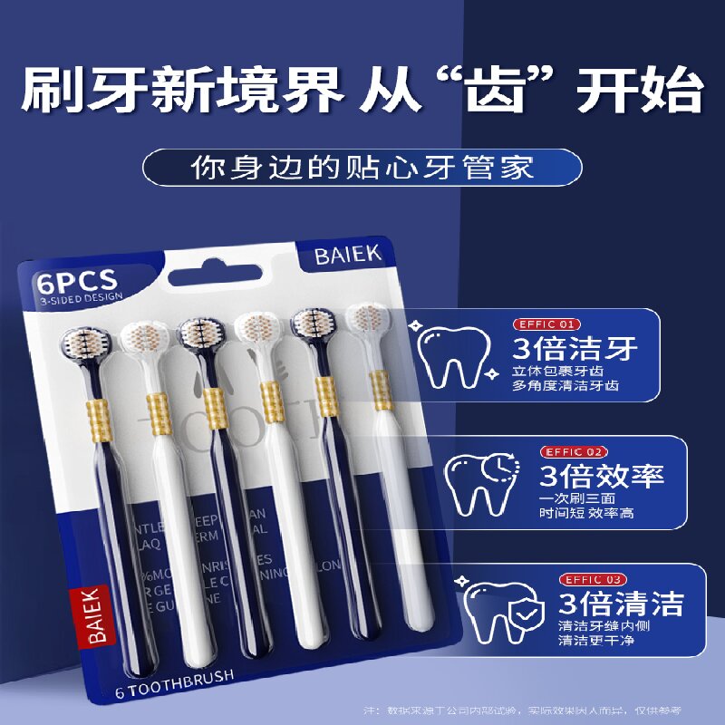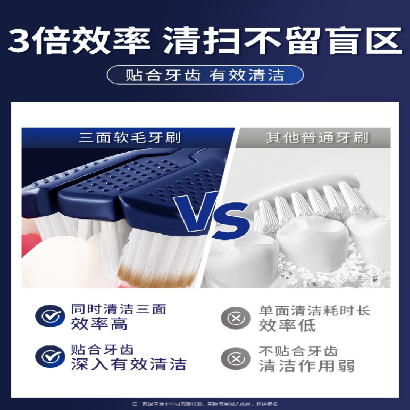 天猫三面牙刷软毛成人专用清洁力强护龈家庭装家用待客便携旅行情侣款