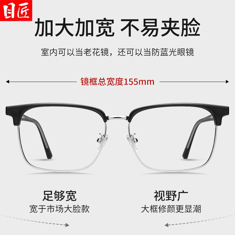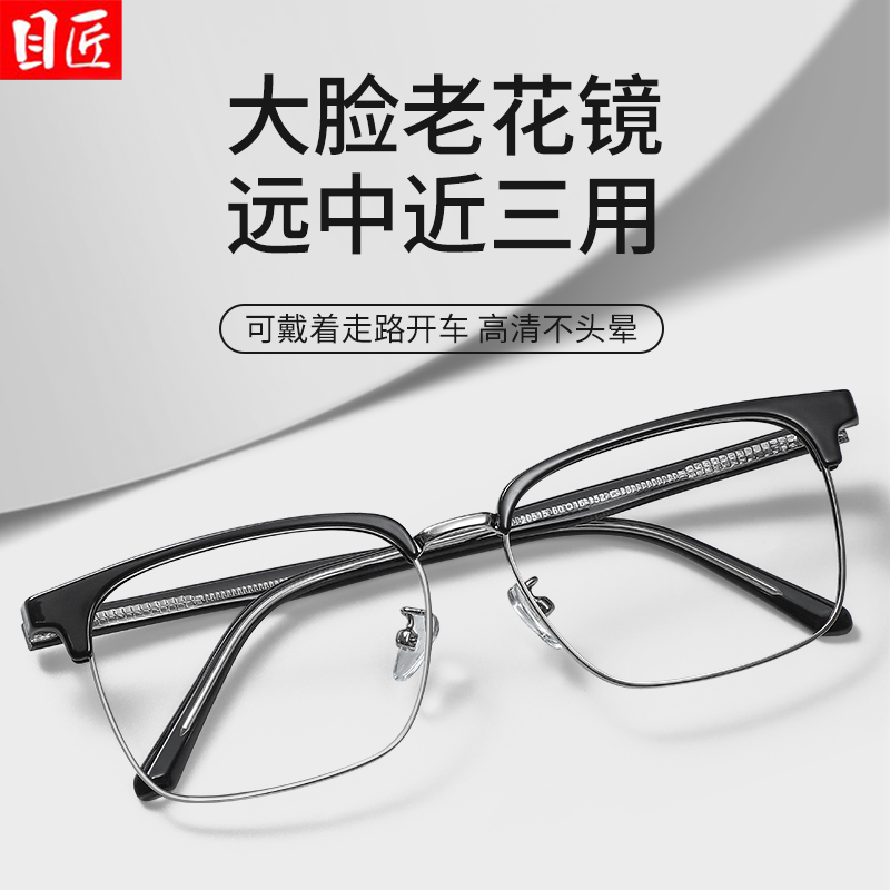 天猫大脸专用远近两用老花镜男款加宽加大框高清高端高级男士宽脸眼镜