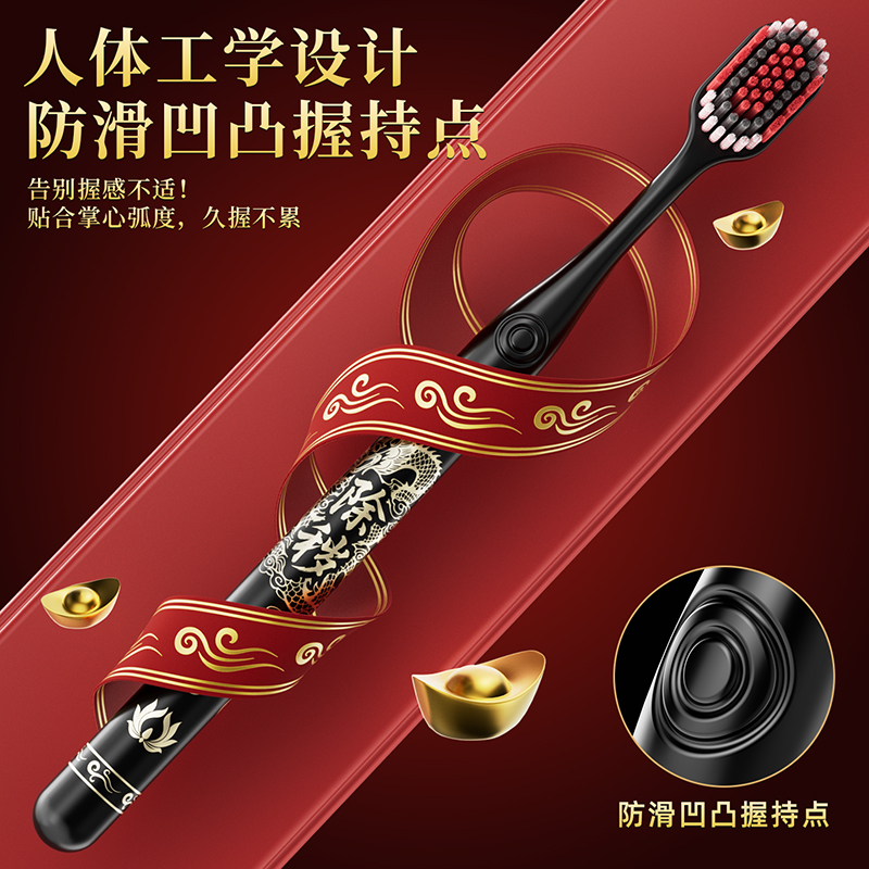天猫哥伦雅牙刷软毛家用高档品质凸面山型宽头成人情侣家庭装男士专用