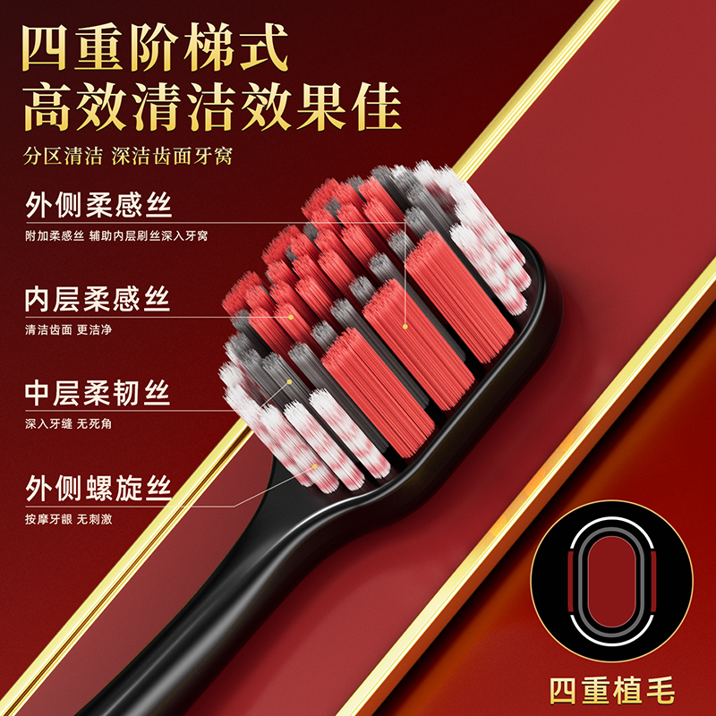 宽头软毛4支装黑莓牙刷大头情侣学生成人牙缝刷网红轻奢男女家用
