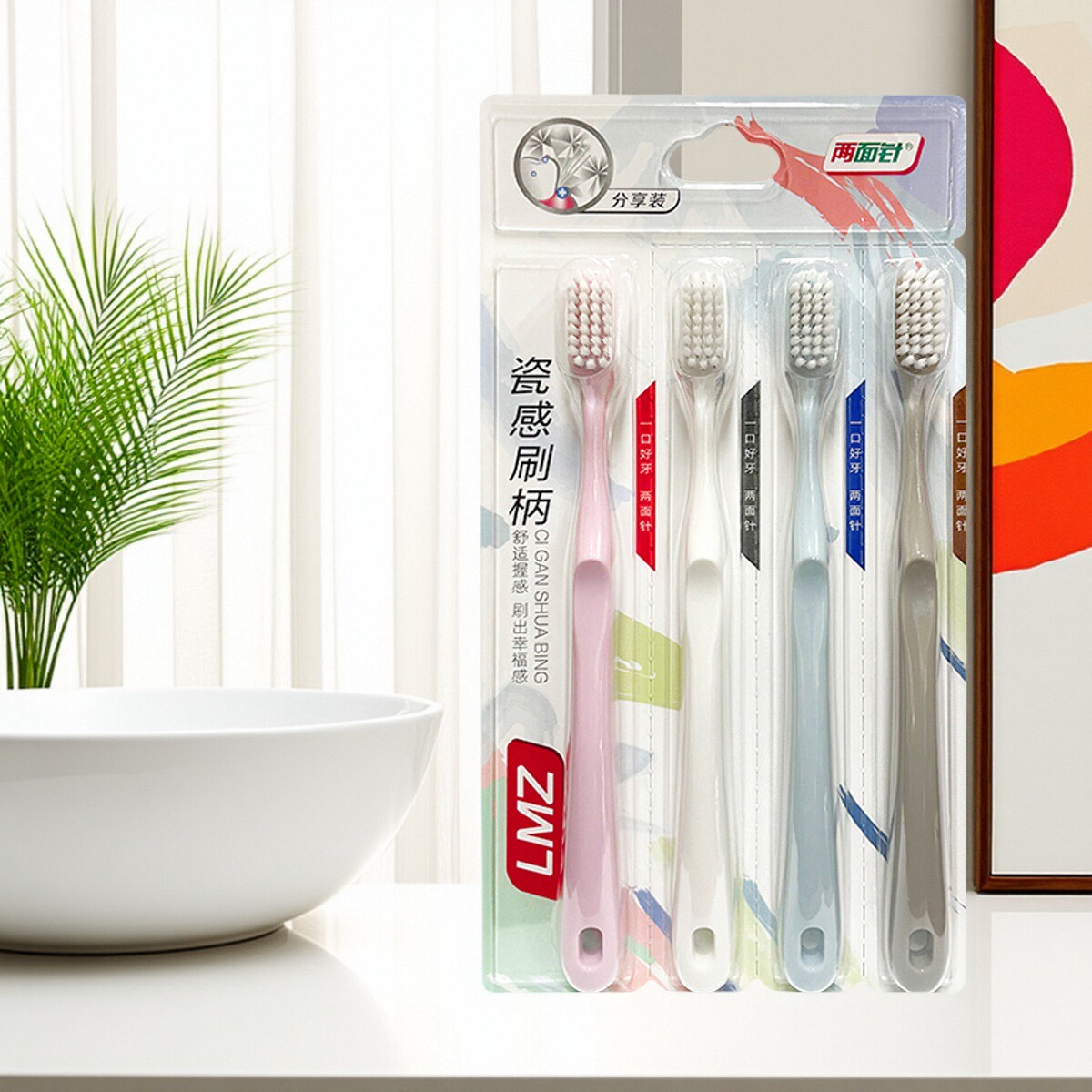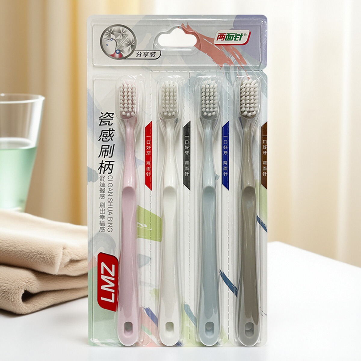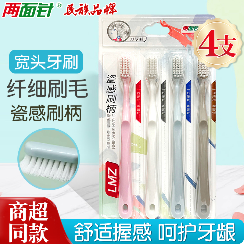 天猫4支两面针牙刷软毛成人家用护龈深层清洁牙缝刷情侣不掉毛家庭装