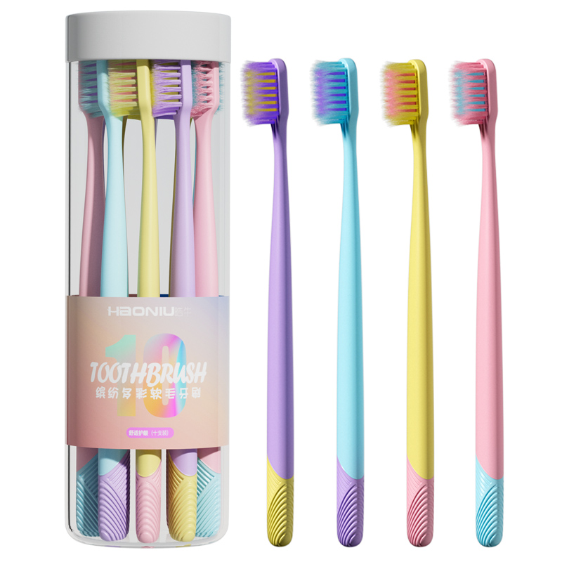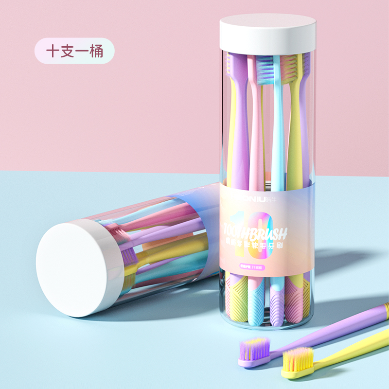 天猫皓牛牙刷软毛成人冰淇淋色家庭装家用10支桶情侣男士女生专用牙刷