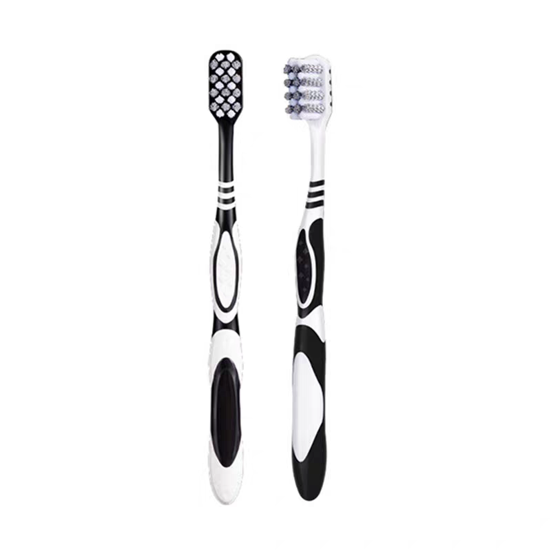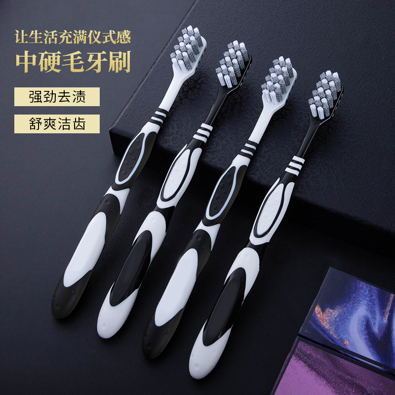 星野家宽头软毛牙刷成人护龈旅行便携情侣黑白简约男女通用家庭装