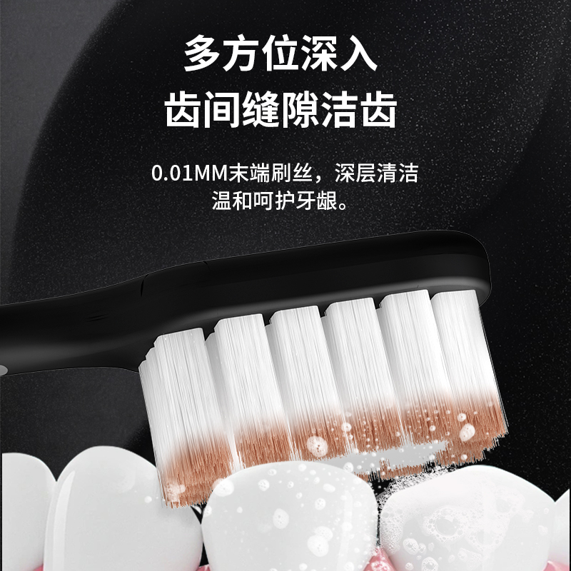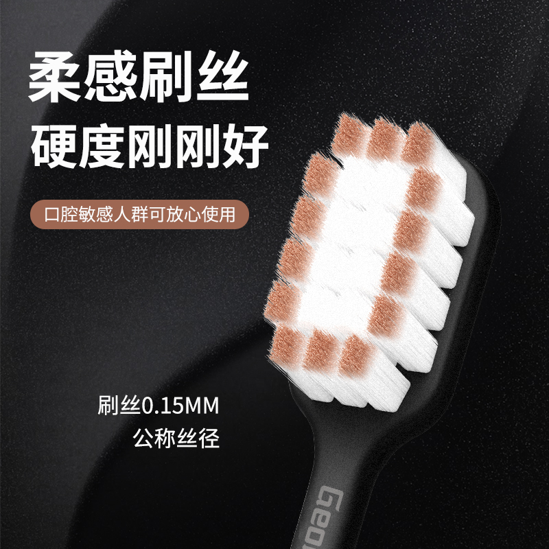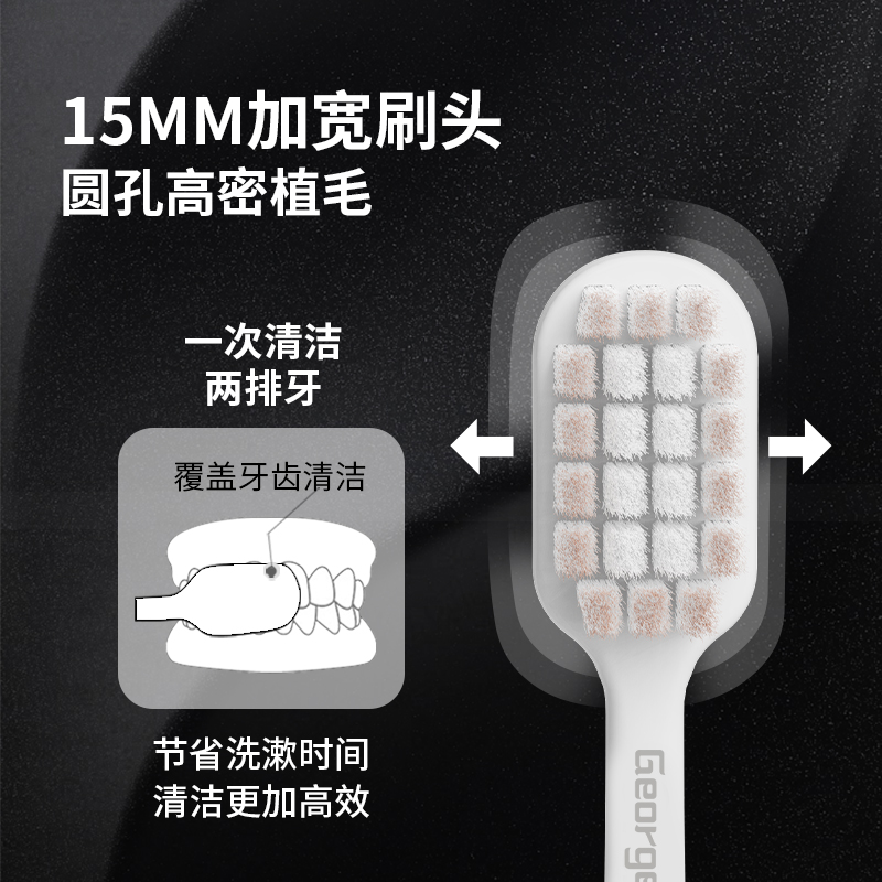 天猫星野家宽头软毛牙刷成人护龈旅行便携情侣黑白简约男女通用家庭装