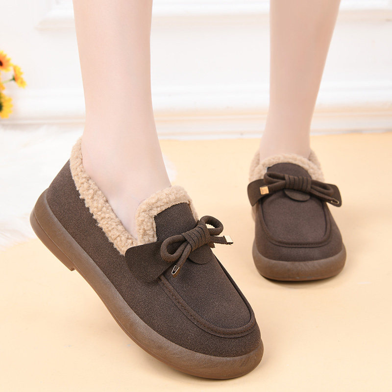 天冬季加绒保暖棉鞋休闲鞋女软底一脚蹬妈妈鞋黑色工作鞋老北京布鞋