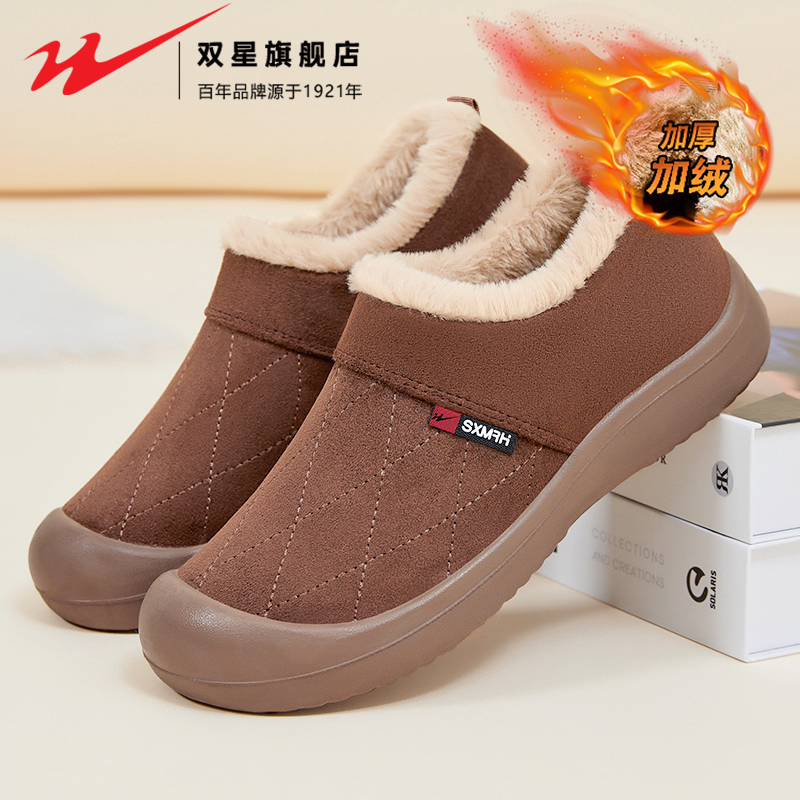 天猫双星老北京布鞋女冬季加绒保暖棉鞋中老年一脚蹬妈妈软底健步棉靴