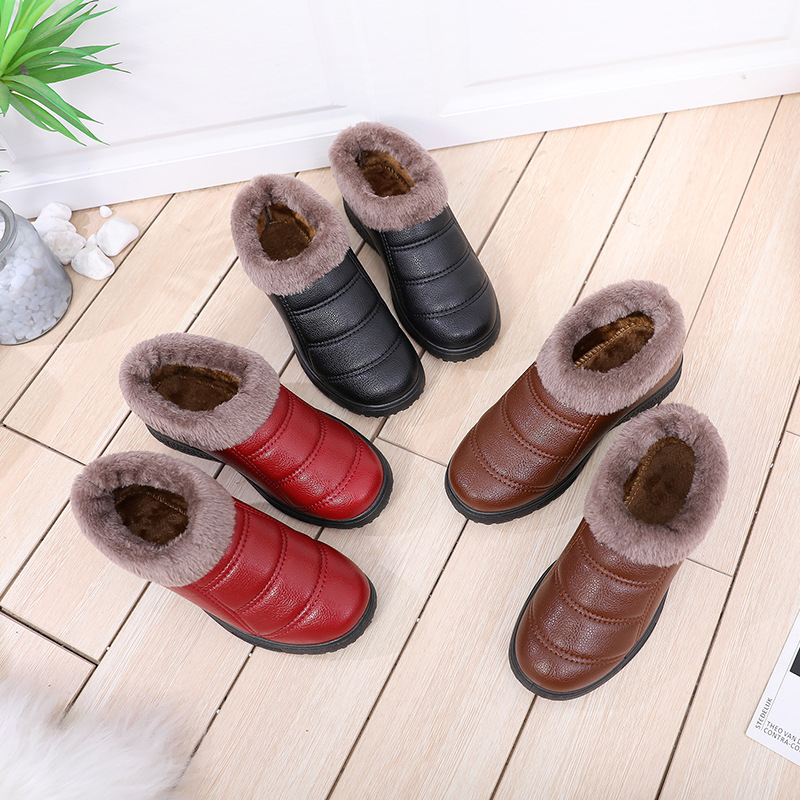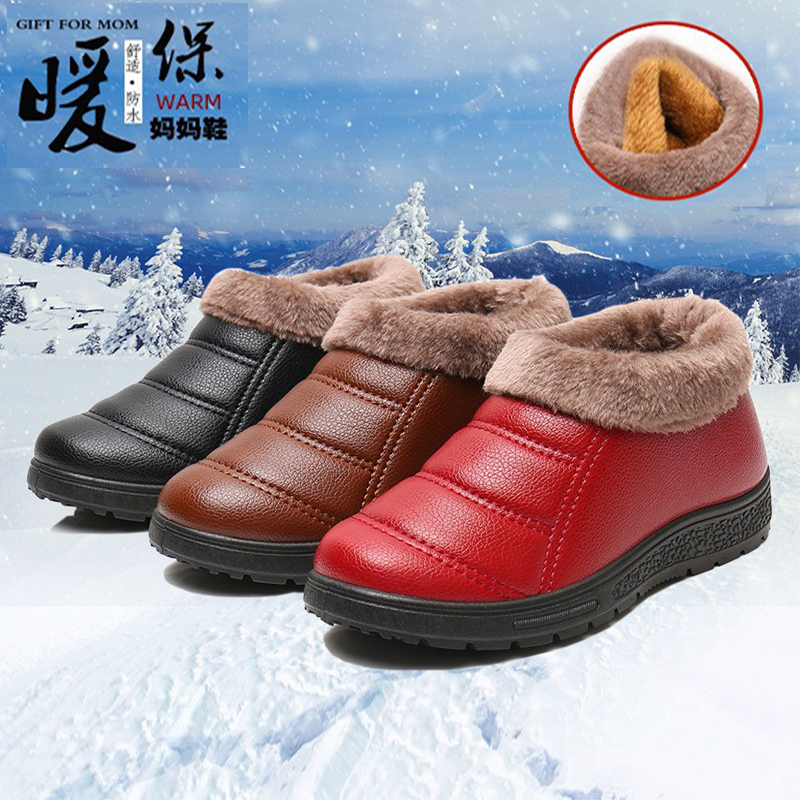 淘宝冬季老北京女棉鞋加绒加厚防水棉靴皮面中老年人妈妈保暖奶奶布鞋