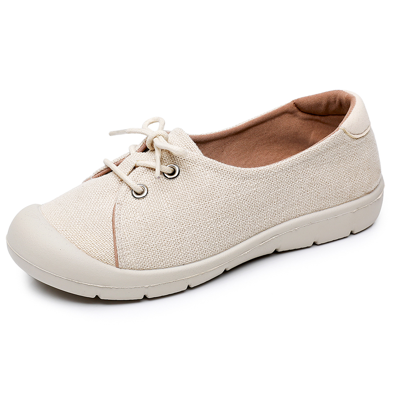 手工盘扣一字扣平底布鞋单鞋女春季亚麻复古中式民国风纯色小白鞋