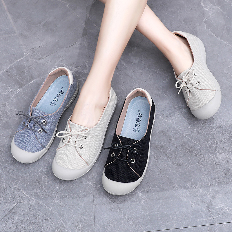 淘宝2024春夏款老北京布鞋女单鞋透气浅口平底鞋软底轻便一脚蹬妈妈鞋