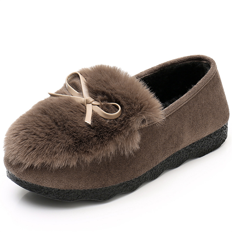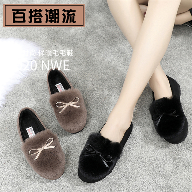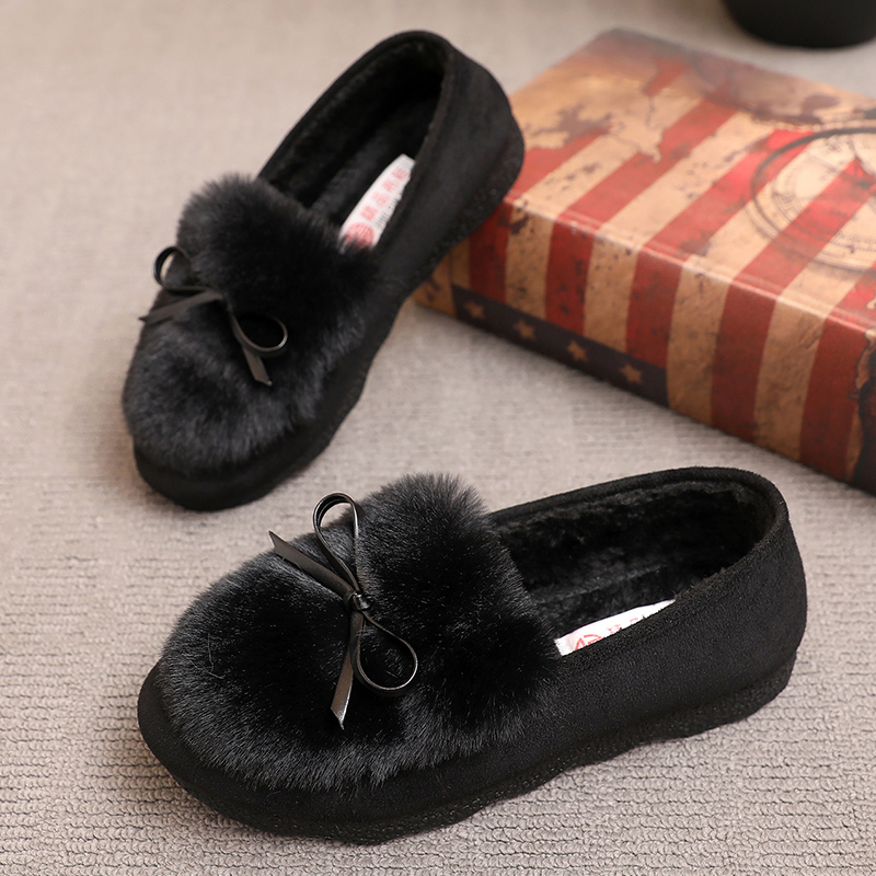 天猫毛毛鞋女冬季外穿加绒棉鞋平底孕妇保暖鞋蝴蝶结豆豆鞋老北京布鞋