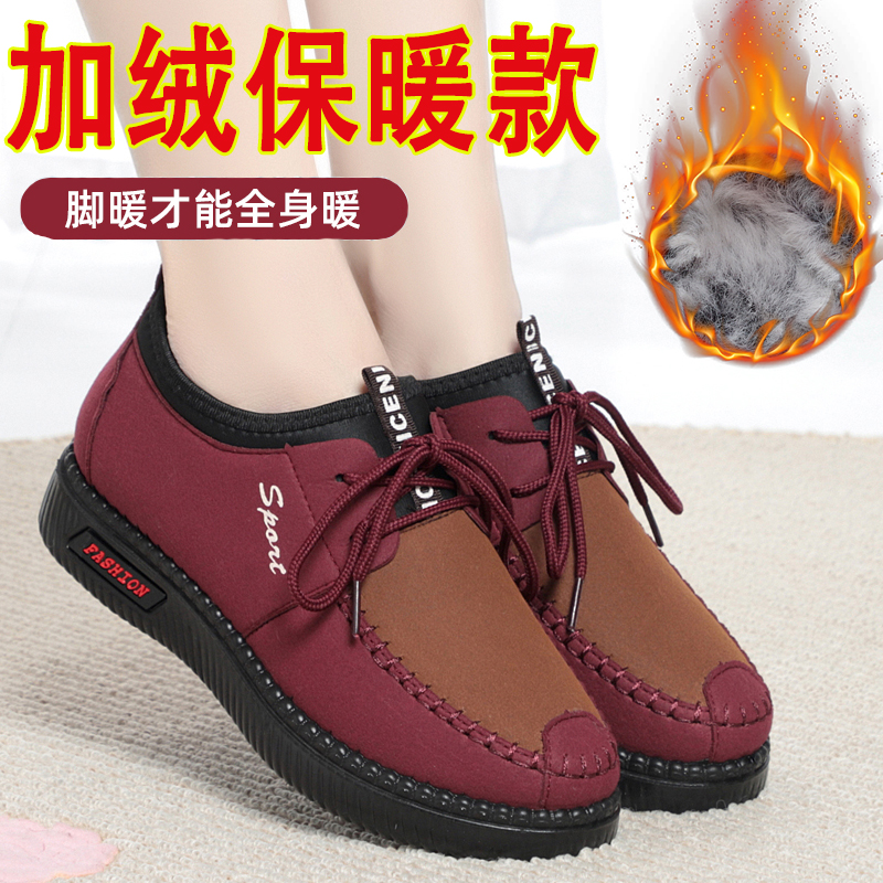 淘宝老北京布鞋冬季平跟妈妈棉鞋女防滑软底老太太加绒低帮奶奶保暖鞋