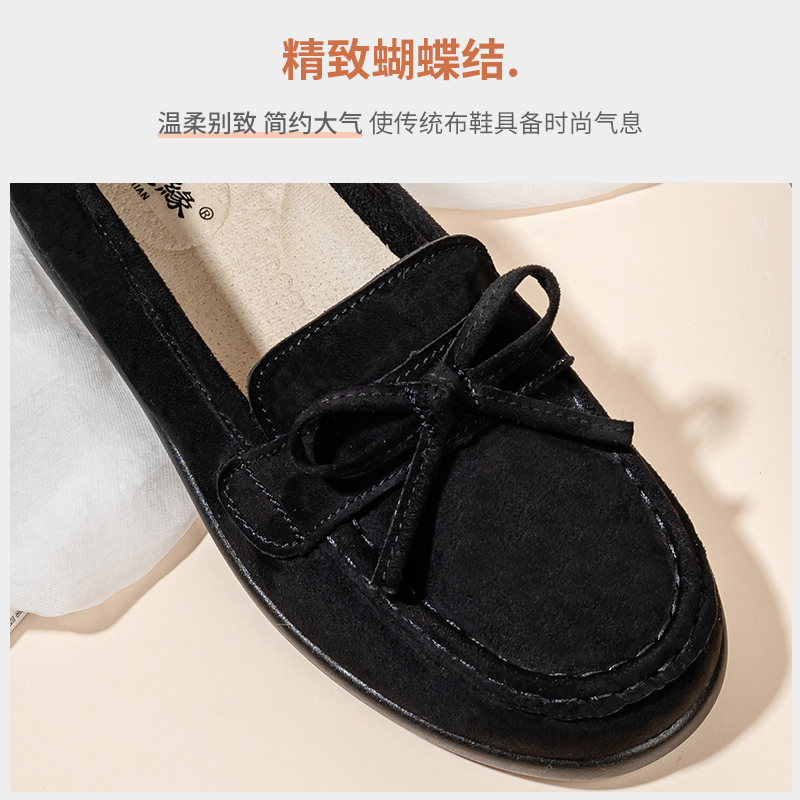 淘宝老北京布鞋女2025春季新款黑色平底鞋豆豆鞋超软底一脚蹬圆头单鞋