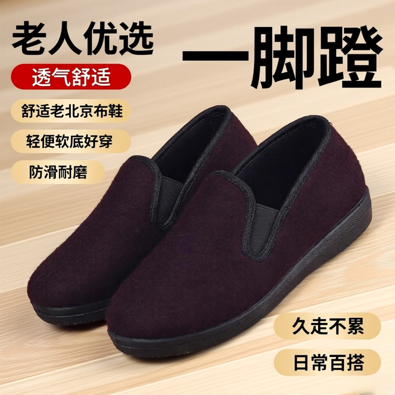 老北京布鞋女春秋中老年妈妈鞋运动健步一脚蹬透气轻便防滑网面鞋