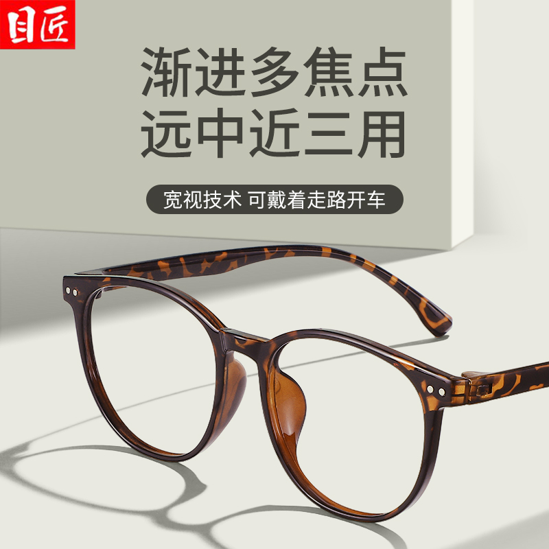 天猫玳瑁色看远近两用老花镜女款自动调节度数智能变焦女士年轻款眼镜