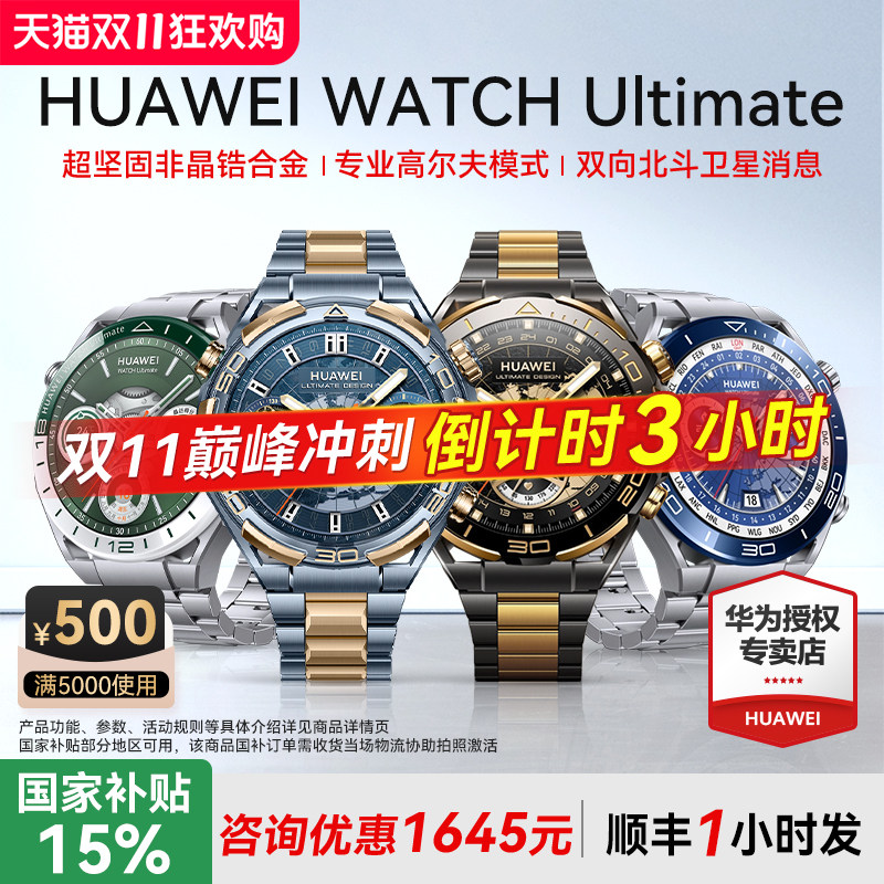 天猫【政府补贴15%】华为手表WATCH Ultimate非凡大师黄金智能高尔夫腕表专业潜水登山运动双向北斗卫星信息探索