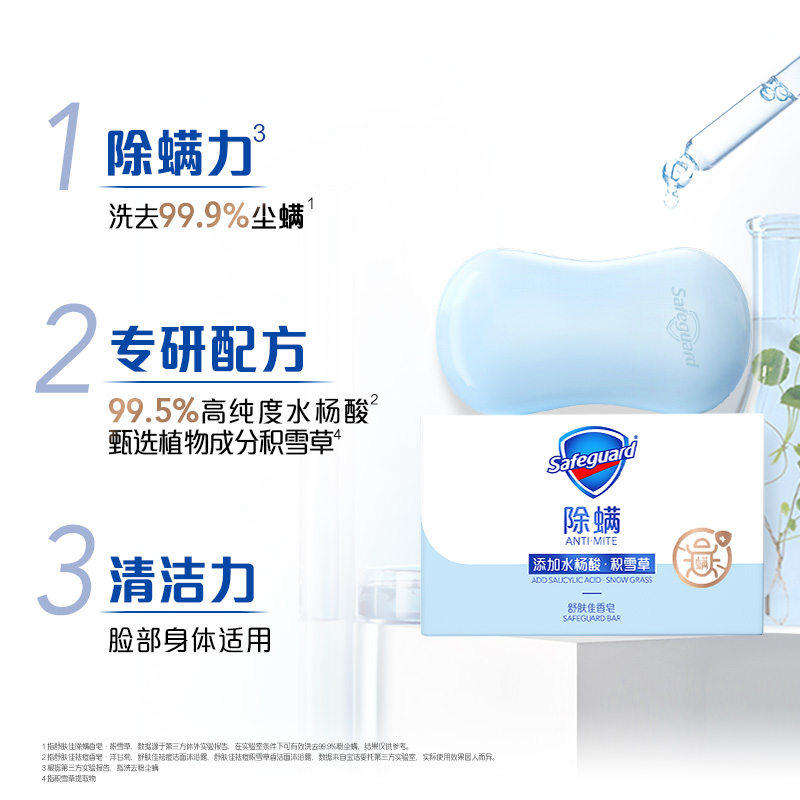 舒肤佳祛痘除螨香皂是官方品牌推出的新款护肤佳品。此款香皂采用白茶、积雪草提取物及水杨酸成分,具有深层清洁、祛痘除螨、调节肌肤水油平衡的功效。精心呵护肌肤,温和不刺激,适用于全身洗澡及脸部清洁。有效清除皮肤表面的污垢和细菌,预防痘痘滋生,让肌肤清爽舒适,散发自然光彩。正品保障,让您安心使用。是一款集清洁与护肤于一体的理想选择。
