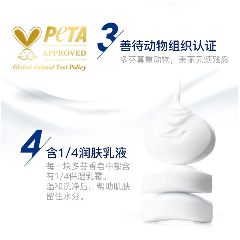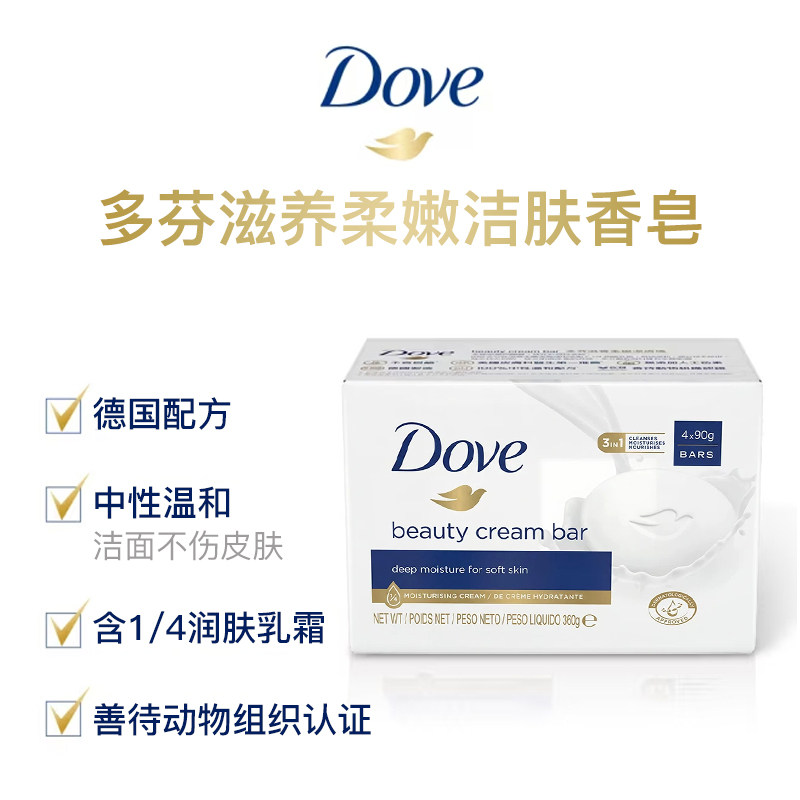 淘进口多芬乳霜香皂90g4块中性滋润洗脸洁面香皂清洁肌肤牛奶香樱花
