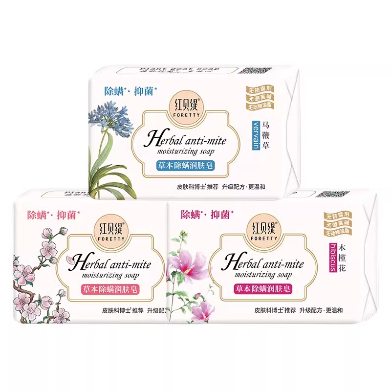 淘宝红贝缇草本除螨润肤皂舒缇香氛温和洗澡沐浴香皂樱花马鞭草木槿花