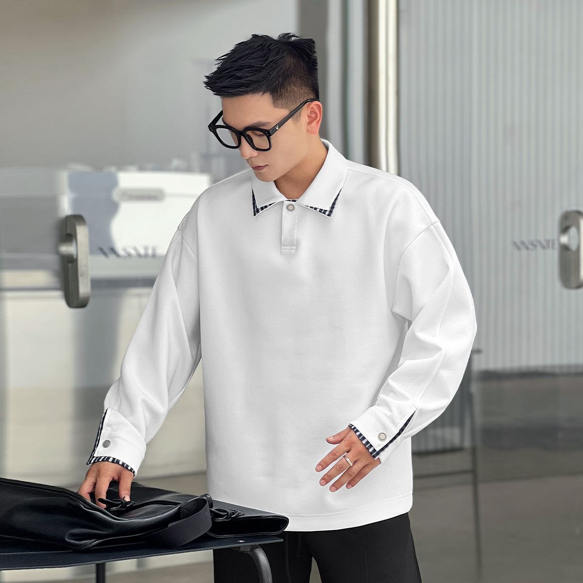 天【热力温感】拇指白小T长袖男款POLO衫秋新款暖肤商务休闲翻领T恤