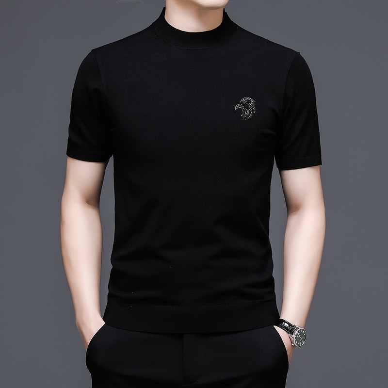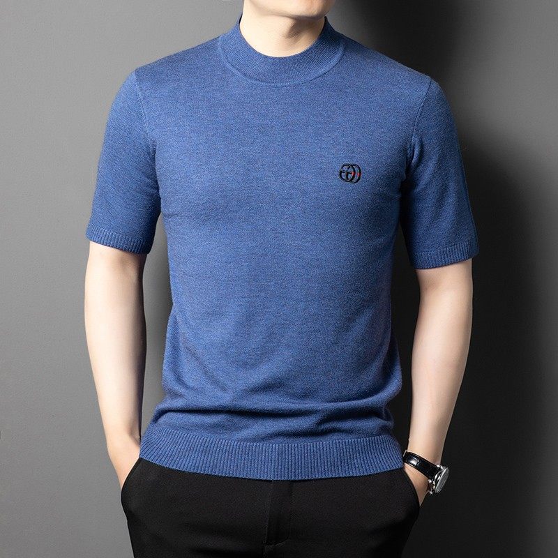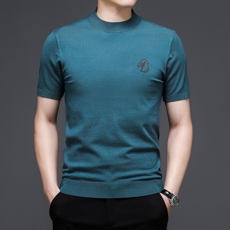 淘宝男士针织短袖毛衣男半高领半袖羊毛衫秋冬半截袖打底衫修身线衣潮